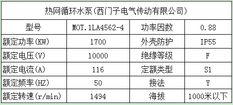 (2)熱網(wǎng)循環(huán)水泵參數及電機參數