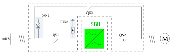 森蘭高壓變頻器一拖一手動(dòng)旁路一次系統圖