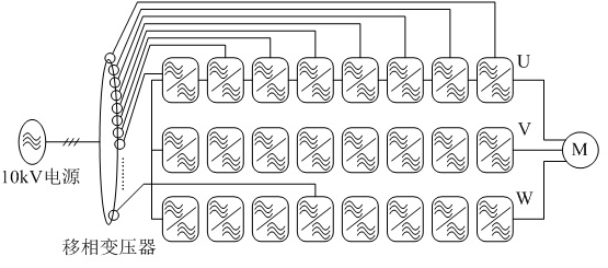 SBH系列高壓變頻器采取的拓撲結構方式為單元串聯(lián)型高壓變頻器,其為直接高-高變換電壓源型,變頻器基本原理如下圖2所示: