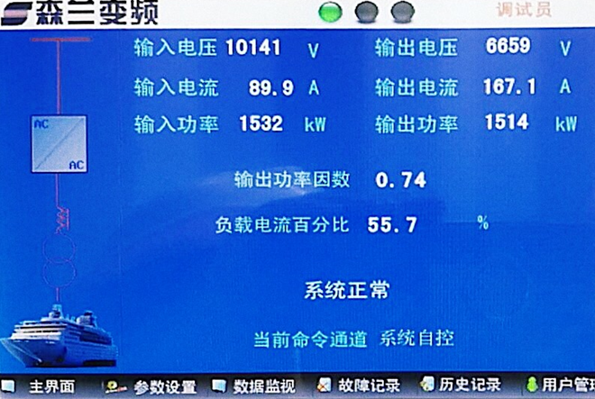 根據連船實(shí)踐,發(fā)電機連船并網(wǎng)瞬間,因發(fā)電機系統與岸電電源系統電壓、相位存在一定的差異,從而導致產(chǎn)生瞬間無(wú)功功率,如果不能及時(shí)得到控制,則有可能導致連船失敗。希望森蘭最新研制的VFPS及SB70P系列岸電電源專(zhuān)用電源,具有防無(wú)功諧振功能,具有很強的抗沖擊能力,在電氣選型設計的時(shí)候,考慮到因并網(wǎng)無(wú)功而導致的沖擊。在控制階段實(shí)時(shí)對電壓、相位進(jìn)行實(shí)時(shí)控制,從而避免連船失敗。