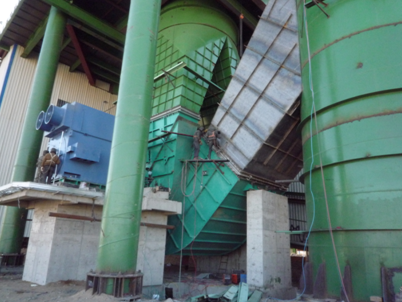 另一個(gè)是流量達到2000000 m3/h ,全壓達到5900 pa ,功率為5000KW的系統風(fēng)機。而我們森蘭高壓變頻器改造的就是這臺系統風(fēng)機,變頻器型號為SBH-100-5600。經(jīng)過(guò)打散粉碎后的物料在擋料錐的導向作用下通過(guò)擋料錐外圍的環(huán)形通道進(jìn)入在風(fēng)輪向分布的風(fēng)力分選區內。物料的分級中的粗顆粒物料由于其運動(dòng)慣性大,在通過(guò)風(fēng)力分選區的沉降過(guò)程中,運動(dòng)狀態(tài)改變較小而落入內錐筒體被收集,由粗粉卸料口卸出返回,同配料系統的新鮮物料一起進(jìn)入輥磨機上方的稱(chēng)重倉。細粉由于其運動(dòng)慣性小,在通過(guò)風(fēng)力分選區的沉降過(guò)程中,運動(dòng)狀態(tài)改變較大而產(chǎn)生較大的偏移,落人內錐簡(jiǎn)體與外錐筒體之間被收集。