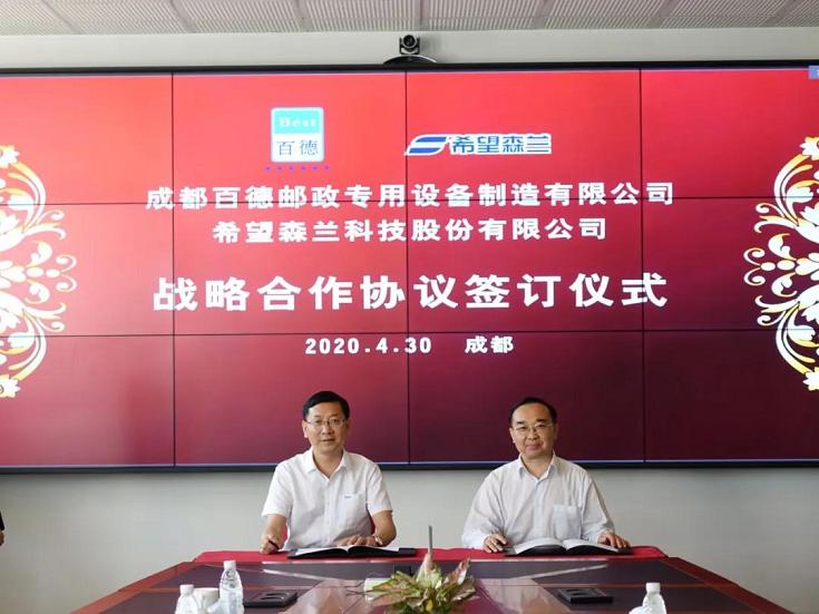 成都百德郵政專(zhuān)用設備制造有限公司董事長(cháng)李承剛先生在簽約儀式上表示:“百德郵政22年,白手起家,從最初的鈑金發(fā)展到今天的智能化、機電信息一體化。我們注重研發(fā)、注重企業(yè)文化和團隊建設,非常期待與希望森蘭在上下游各產(chǎn)業(yè)鏈有更多更深的合作,具體到在智能化物流設備控制解決方案、企業(yè)文化、生產(chǎn)工藝流程優(yōu)化和協(xié)作等方面,加強合作,共同發(fā)展,做大做強!”