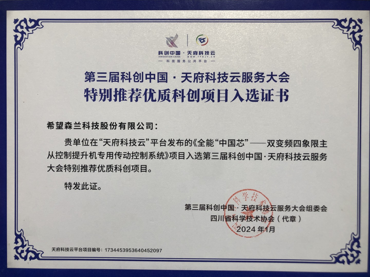 本屆大會(huì )面向大院大所大企業(yè)等征集到科創(chuàng )項目8700個(gè),希望森蘭科技股份有限公司作為國內專(zhuān)業(yè)從事傳動(dòng)控制技術(shù)研究的領(lǐng)軍企業(yè),憑借硬核解決方案成功吸引了大會(huì )的關(guān)注。不僅被選為本屆重大高新技術(shù)待推廣項目,還榮獲了“特別推薦優(yōu)質(zhì)科創(chuàng )項目”獎項。